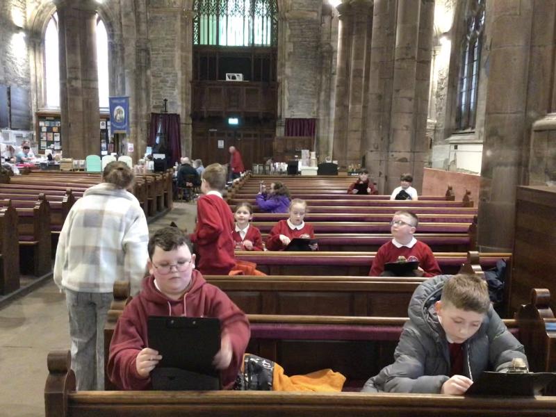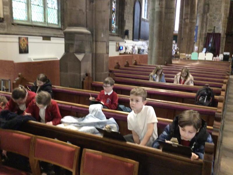 Y4 visited StThomas the Martyr for their History and Art lesson this week. They started off by looking at the church and the grounds and imagining how it used to be a bustling priory and even with some children wondering if they were walking in King Edward's footsteps after his visit. We also hunted for Nanny Lyon's gravestone and wondered if the local legend George was buried there. Finally we chose a spot at the front of the church to sketch before heading back.
