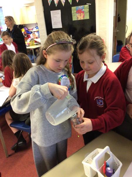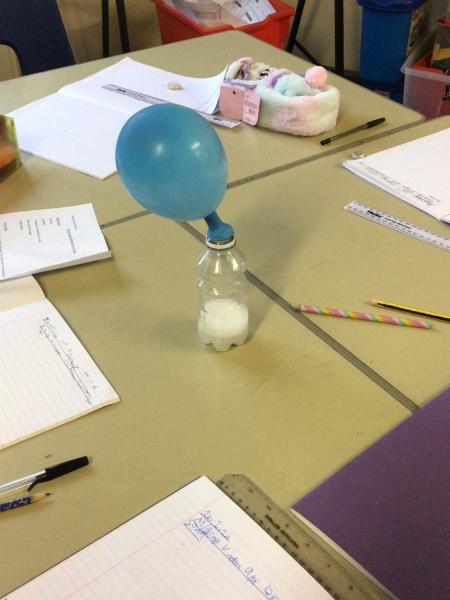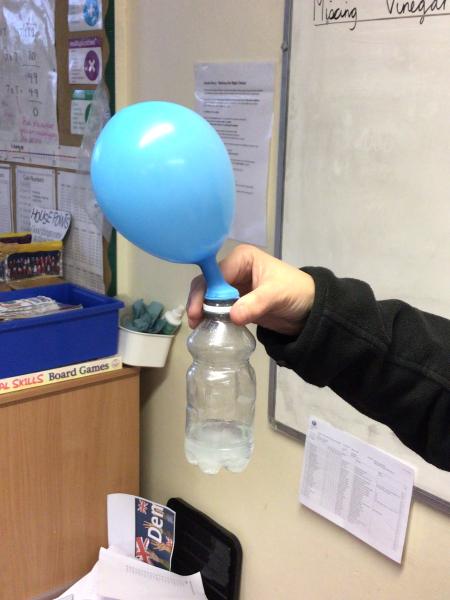 Using a bottle, vinegar, a balloon, funnel and Bicarbonate of Soda they were able to inflate their balloon with the new solution.